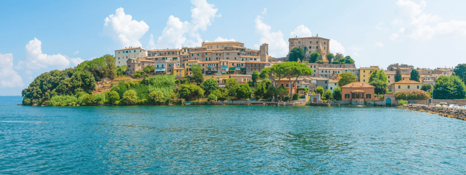 Toscana se despide y el Lazio nos da la bienvenida. Cambia el paisaje, pero no la belleza. Rodamos por caminos rurales hasta que, tras una última colina, se abre ante nosotros el espejo azul del Lago di Bolsena. Es hora de quitarse los zapatos, sumergir los pies y dejarse abrazar por el agua.